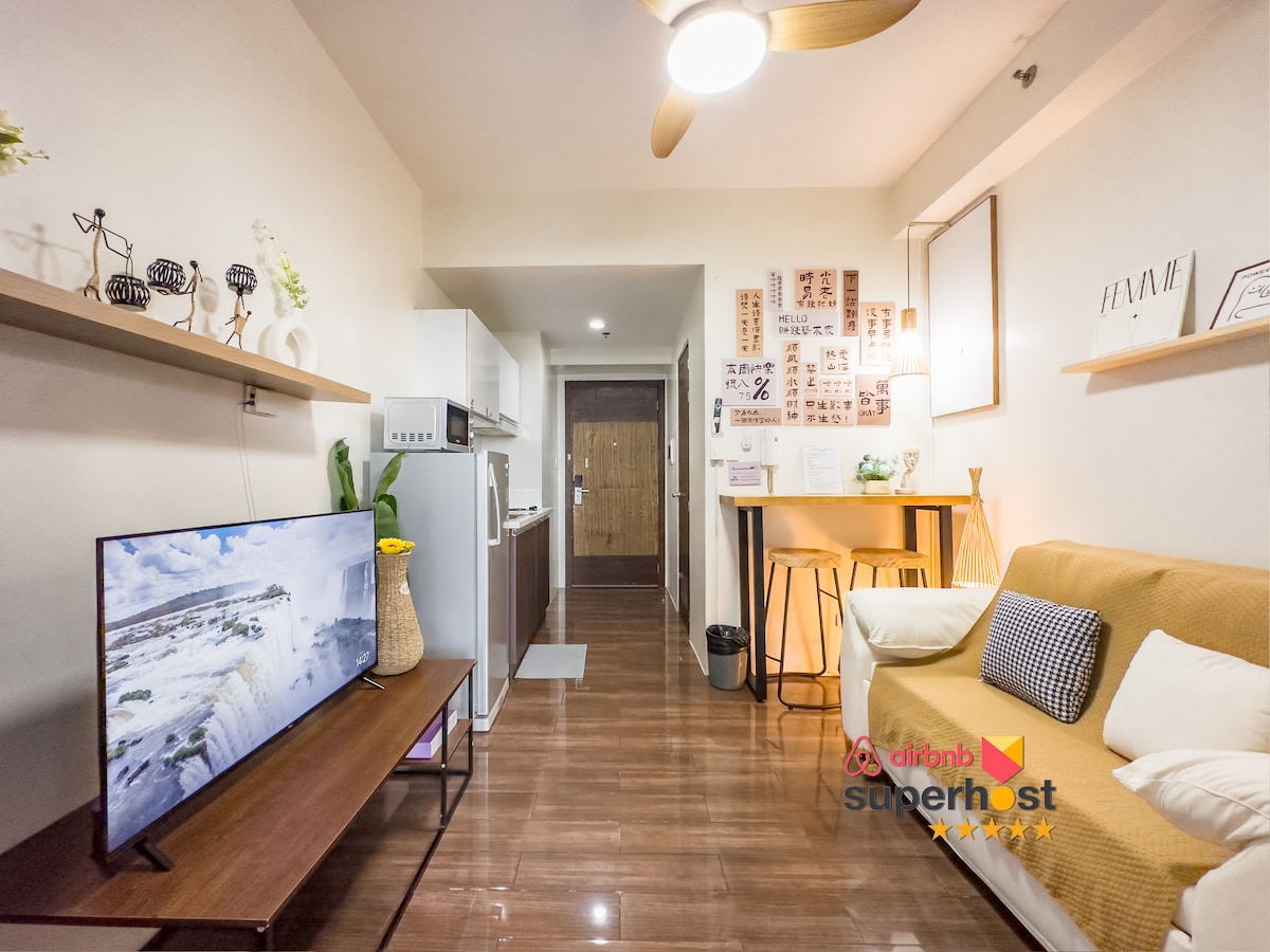 Απολαύστε μια χαλαρωτική διαμονή σε αυτό το πλήρως επιπλωμένο, με υπέροχη θέα στο μπαλκόνι — Muji hōme-tél στην καρδιά του Μακάτι! ΕΠΙΣΗΜΑΝΕΤΑΙ: Τηλεόραση 55 ιντσών UHD με Netflix και Disney+, πλυντήριο και στεγνωτήριο LG, μαγειρικά σκεύη και σκεύη, ηλεκτρική σκούπα Dyson V15, αυτόματες κουρτίνες και ψηφιακή κλειδαριά πόρτας. Το κατάλυμα βρίσκεται στο Air Residences, έναν βραβευμένο πύργο με το δικό του Lobby Mall που βρίσκεται κατά μήκος της κεντρικής επιχειρηματικής περιοχής του Μακάτι, της Ayala Avenue. Αυτόματο: 5%off για διαμονή 1 εβδομάδας και 10%off για διαμονή 30 ημερών.