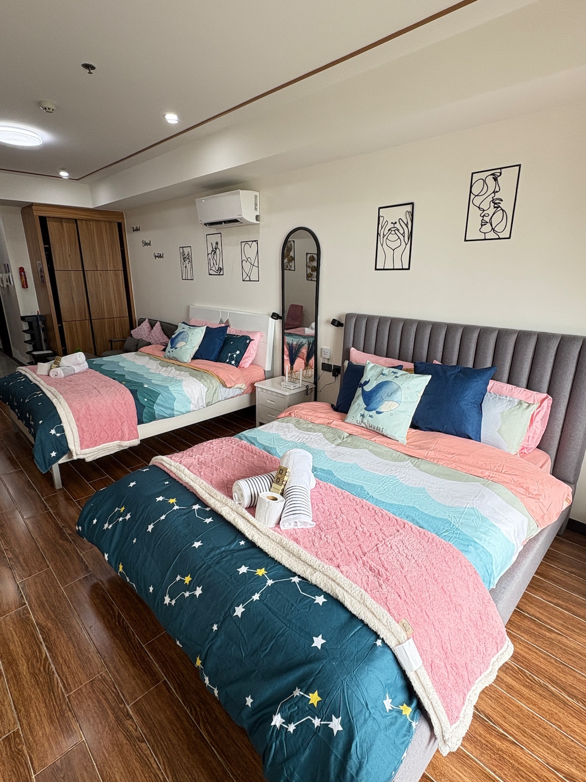 Αυτό το διαμέρισμα 2 υπνοδωματίων είναι μια πρότυπη μονάδα (62 τ.μ.) του Sorrel Residences στην καρδιά της Μανίλα. Netflix και γρήγορο wifi με σταθερόμενο. Κατάλληλο για οικογένειες και ομαδικούς ταξιδιώτες. Ευρύχωρο και όμορφο πλήρως επιπλωμένο διαμέρισμα. Απέναντι από το SM Centerpoint/Sta.Mesa και σε κοντινή απόσταση με τα πόδια από τον σταθμό LRT 2 V.Mapa, ορισμένες τράπεζες, άλλα παντοπωλεία όπως το Isetann, το Save More και επίσης κοντά στο University Belts. Γιατί να πληρώσετε για 2 δωμάτια ξενοδοχείου όταν μπορείτε να τα έχετε στην τιμή του ενός. Επιπλέον, θα βρείτε όλες τις ανέσεις ενός σπιτιού.
