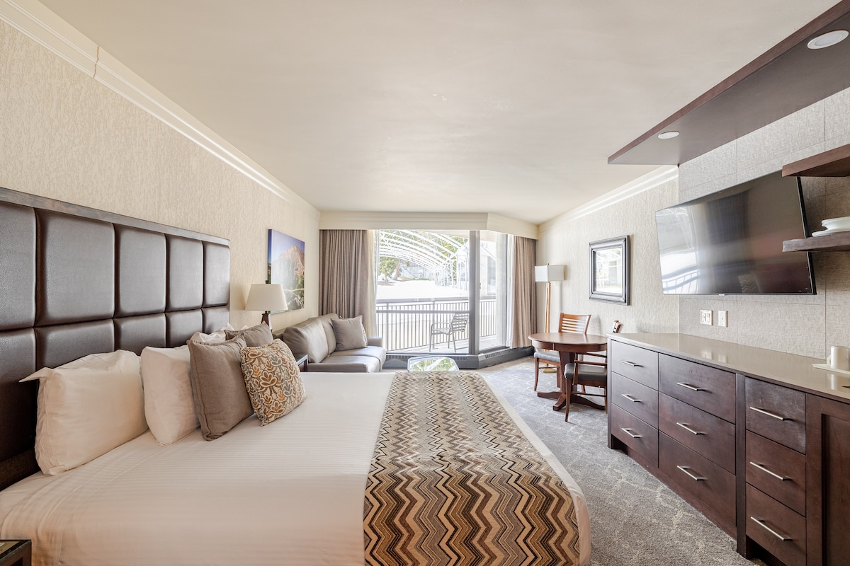 Στούντιο με θολωτή οροφή σε ανώτερο επίπεδο 1,5 μίλια από το χιονοδρομικό κέντρο και την Main St (περίπου 5 λεπτά μακριά) 360 τετραγωνικά πόδια. ΔΩΡΕΆΝ λεωφορείο που σας μεταφέρει σε θέρετρα/καταστήματα. Έξυπνη τηλεόραση 60", ξύλινα πατώματα, τζάκι αερίου, ΜΙΚΡΉ κουζίνα, υπέρδιπλο κρεβάτι (2 άτομα) και καναπές-κρεβάτι πλήρους μεγέθους με στρώμα αφρού μνήμης (1 άτομο). Τζακούζι ανοιχτό όλο το χρόνο. Η πισίνα είναι ανοιχτή τους καλοκαιρινούς μήνες. Εστιατόρια σε κοντινή απόσταση. Θα πρέπει να ανεβείτε μια σκάλα για να έχετε πρόσβαση. Θέλω το στούντιό μου να σας κάνει να νιώθετε σαν στο σπίτι σας!