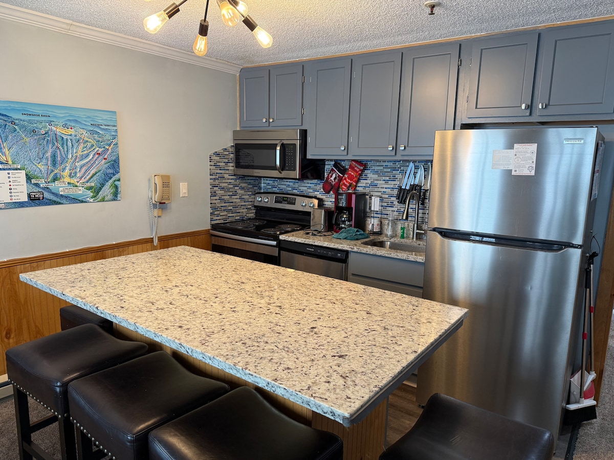 ML206- Ζήστε την εμπειρία αυτού του ευρύχωρου διαμερίσματος για σκι/ποδήλατο μέσα/έξω με θέα στο βουνό και γραφική θέα. Εξοπλισμένο με πλήρως εξοπλισμένη κουζίνα και όλα όσα μπορεί να χρειαστείτε στη διάθεσή σας. Σε βολική τοποθεσία δίπλα στο Village, απολαύστε μια οικογενειακή επίσκεψη στο Snowshoe με πολλά διασκεδαστικά παιχνίδια στο λόμπι του ML και ψώνια και φαγητό λίγα βήματα έξω από την πόρτα. Μετά από μια κουραστική μέρα στις πλαγιές, βρείτε τις πισίνες Split Rock μόλις βγείτε από την πόρτα, όπου μπορείτε να απολαύσετε τις πισίνες και τα τζακούζι (με ημερήσια χρέωση).