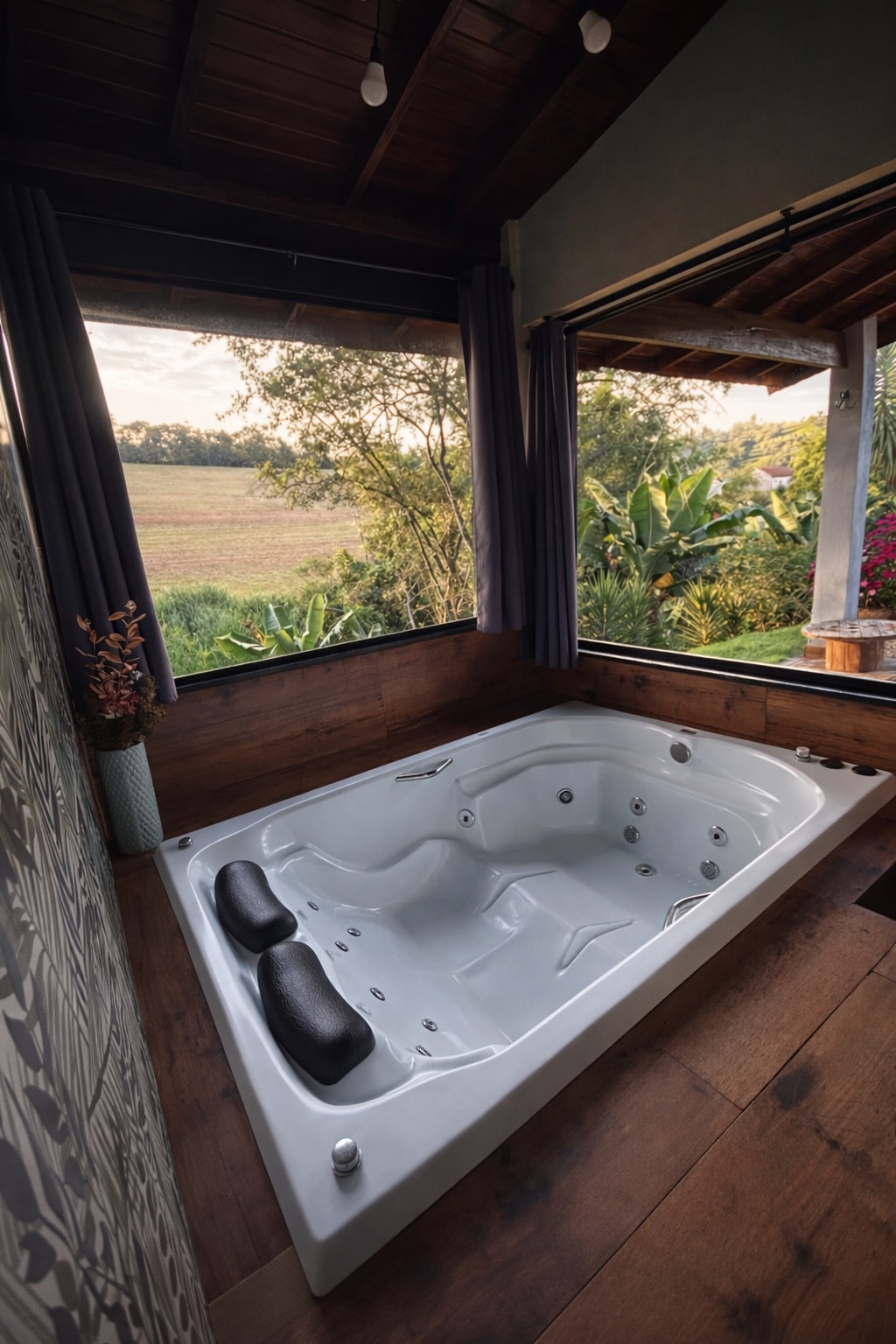 Ιδιωτικό και ρομαντικό σαλέ, ιδανικό για ζευγάρια, με θερμαινόμενο τζακούζι και υπέροχη θέα στα βουνά. Το Chalé Jasmim προσφέρει κρεβάτι queen size, πλήρως εξοπλισμένη κουζίνα, Wi-Fi, smart TV, πάρκινγκ και απόλυτη ιδιωτικότητα μέσα στη φύση. Βρίσκεται σε ένα ασφαλές οικογενειακό ράντσο, με χώρο για φωτιά και 3 λιμνούλες για ψάρεμα, και είναι ιδανικό για ημέρες ξεκούρασης και επανασύνδεσης για δύο άτομα.