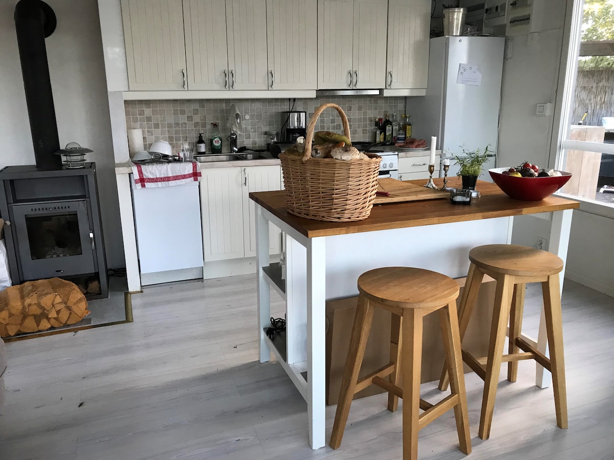 Απολαύστε ένα γνήσιο ξυλόσπιτο - κοντά στη φύση, τη θάλασσα και τις όμορφες λίμνες! ✨ Διαβίωση Κοιμηθείτε στη ζεστή σοφίτα. Απολαύστε την ύπαιθρο. 🌿 ΤΟΠΟΘΕΣΙΑ Η θάλασσα, το Sörsjön και το Mörkö απέχουν 3 χιλιόμετρα. 10 λεπτά από το κάστρο Tullgarns ή τη γοητευτική Trosa. 🛠️ Μοναδικές Εμπειρίες Βυθίστε, εξερευνήστε μονοπάτια πεζοπορίας ή υποδεχτείτε τα πρόβατα της φάρμας. 🏡 Παροχές Η βασική εξοπλισμένη κουζίνα με γνήσια αίσθηση και τζάκι κάνει τη διαμονή σας αξέχαστη. Η τουαλέτα είναι τύπου separett. 🎯 Προσωπική εξυπηρέτηση Ο οικοδεσπότης μένει στην ιδιοκτησία και θα χαρεί να σας καθοδηγήσει!