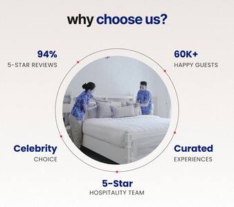 ◆ Being featured in India Today is a proud milestone for us, affirming our commitment to crafting villas that blend refined design, handcrafted details, and the highest standards of luxury living. ◆Located in peaceful Siolim with stunning hill views from a spacious terrace. ◆ 4-BHK luxury Pet Friendly villa, ideal for large groups seeking comfort and charm. ◆ Massive pool—larger than most resorts—with loungers and tiled canopy with Unique boat-shaped swing.