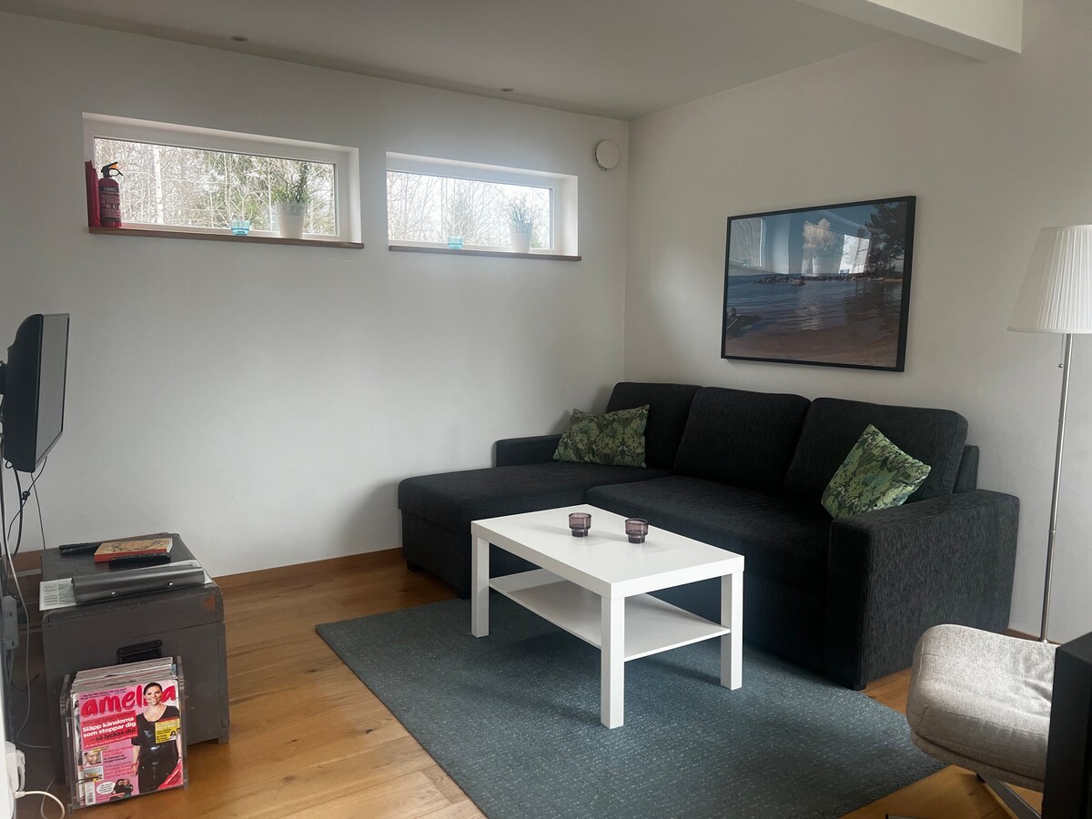 Καλώς ήρθατε στο καταφύγιο μας στην Airbnb, όπου το δάσος και η λίμνη Βένερν (Vänern) σας περιβάλλουν! Τα βράδια μπορείτε να απολαύσετε ένα ποτήρι κρασί στο μπαλκόνι και να απολαύσετε τη θέα στο ηλιοβασίλεμα. Για όσους θέλουν να κάνουν μπάνιο, υπάρχει η δυνατότητα να κάνουν μια βουτιά στους βράχους, λίγα λεπτά με τα πόδια από το σπίτι. Ζήστε μια αξέχαστη διαμονή και επανασυνδεθείτε με τη φύση. Καλώς ήρθατε στην επόμενη περιπέτειά σας στην παραλία του Vänern! Διατίθεται ένα διπλό κρεβάτι (πλάτους 160 cm) και ένα επιπλέον κρεβάτι. Σημειώστε ότι ο θερμοσίφωνας είναι για ένα μικρότερο νοικοκυριό.