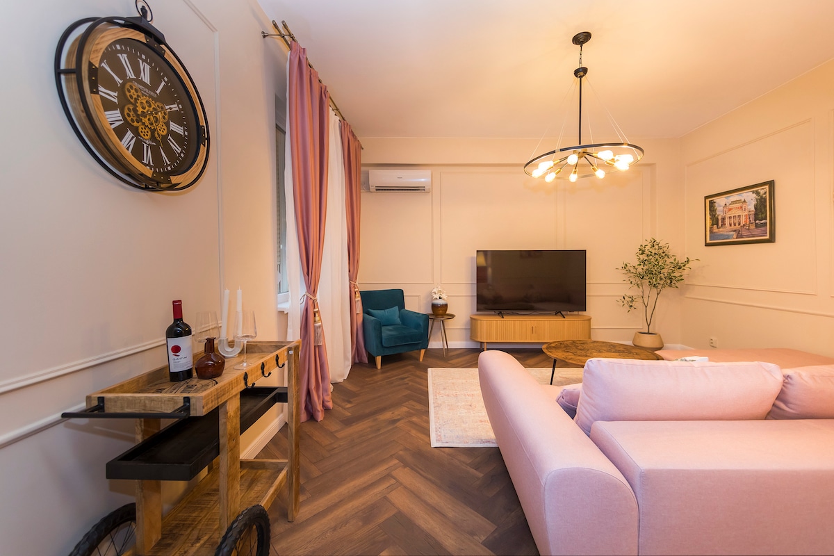 This quiet, romantic apartment in Sofia’s historical center feels like a real home. Filled with light and views of Vitosha Mountain, it’s within easy walking distance of landmarks like the Cathedral, Market Hall, and Vitosha Blvd. Perfect for couples, solo travelers, or remote workers, it’s thoughtfully designed with quality linens, fast WiFi, a full kitchen, and books that invite you to unwind.