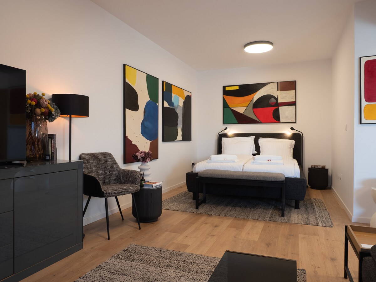 Studio X – Μια πολυτελής σοφίτα με θέα Στον τελευταίο όροφο στην καρδιά της Σόφιας, το Studio X είναι ένα μοντέρνο, κομψό και πολυτελές καταφύγιο. Με κομψούς εσωτερικούς χώρους, πολυτελείς παροχές και εκπληκτική θέα στην πόλη, αυτή η αποκλειστική σοφίτα προσφέρει τον τέλειο συνδυασμό άνεσης και κομψότητας. Είτε επισκέπτεστε για επαγγελματικούς λόγους είτε για αναψυχή, το Studio X προσφέρει μια κομψή και αξέχαστη διαμονή στη ζωντανή πρωτεύουσα.