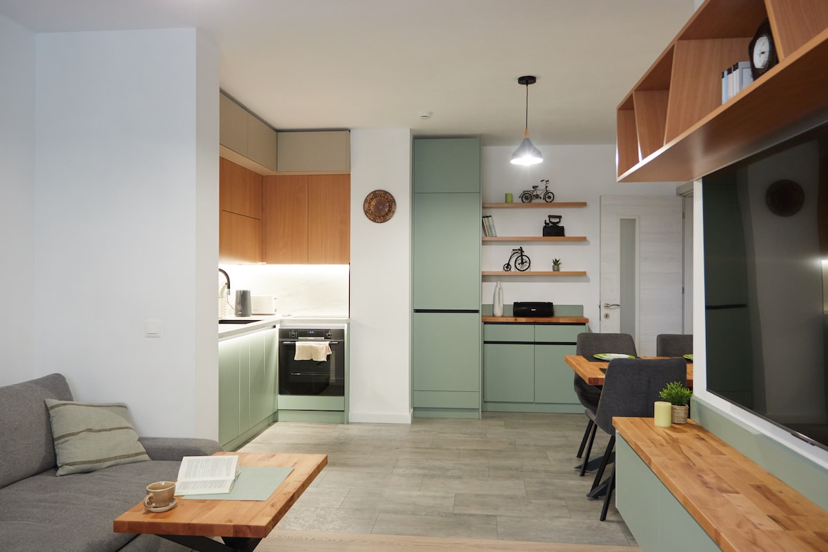 Welcome to my boutique attic studio at the foot of Vitosha. Bright, minimalist and peaceful space with beautiful mountain and city views. Located in a quiet, safe area—perfect for evening walks and relaxing away from the center. The bed features a Magniflex mattress and pillows for excellent rest. The studio has a fully equipped kitchen, fast Wi-Fi and a cozy work/dining area. Clean, calm and with easy access to both the mountain and the city.