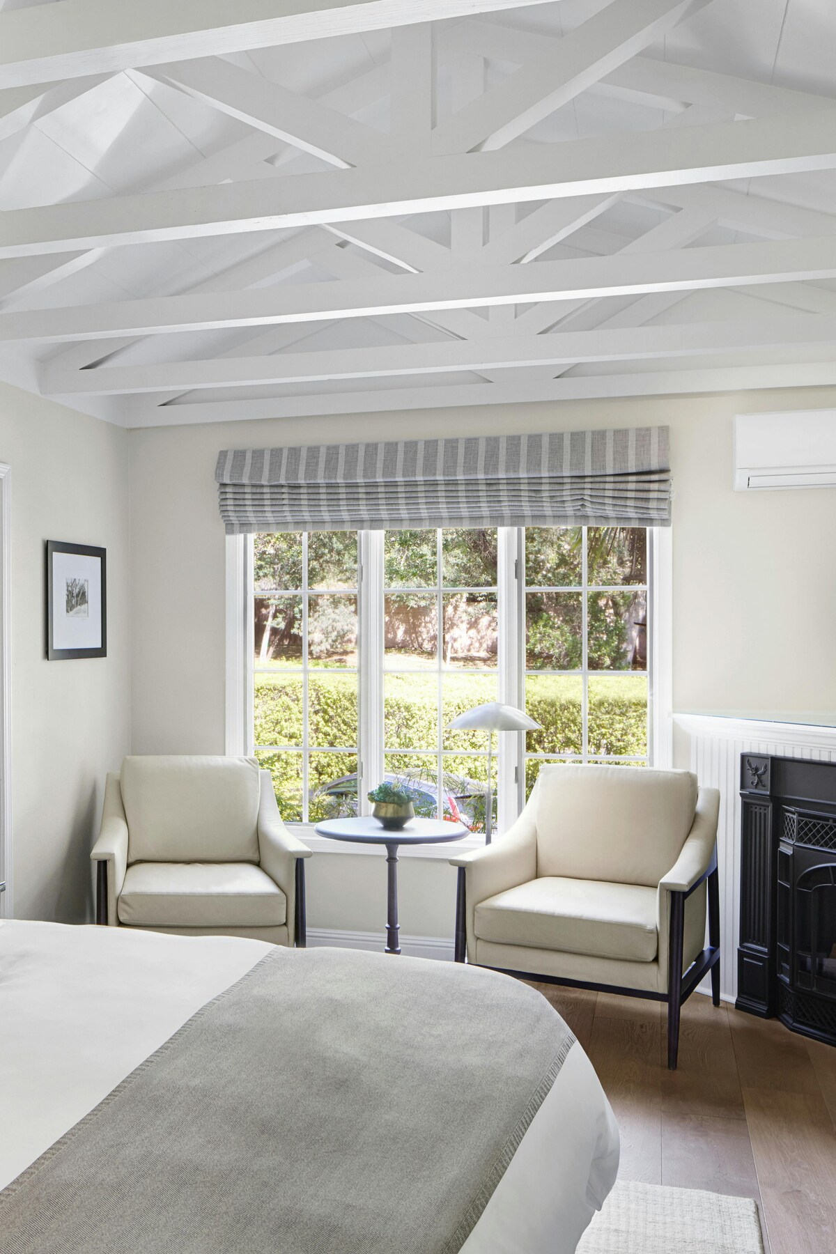 The Harper Room is a charming hideaway, featuring a plush king-sized bed, a comfortable sitting area, and a warm fireplace that invites relaxation. Enjoy morning coffee or an evening glass of wine on your private patio or balcony overlooking tranquil gardens or the Napa River. The spacious bathroom offers a deep soaking tub, rainfall shower, and premium bath amenities for a spa-like experience. With complimentary WiFi and a flat-screen TV, Harper is a perfect sanctuary for a peaceful Napa gtwy.