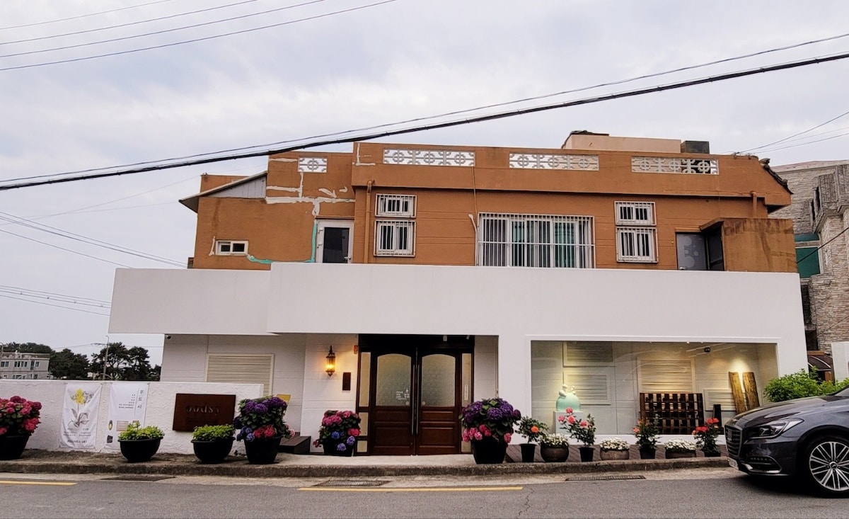 #O stay no.6 /도보 여행하기 가장 좋은 위치/문 앞 3초 바다/ 감성 숙소 2인