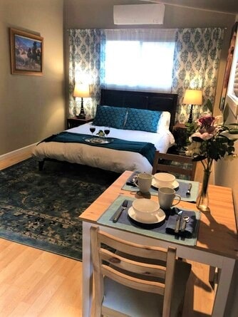 Αυτό το ιδιωτικό στούντιο διαθέτει δική του είσοδο και υπαίθριο χώρο φαγητού με θέα σε αμπελώνα. Είναι άψογα καθαρισμένο και καλά εξοπλισμένο με παροχές. 100% βαμβακερά κλινοσκεπάσματα σε στρώμα Caspar. Σας περιμένουν καφετιέρα, ψυγείο, φούρνος μικροκυμάτων, γιαούρτι, γκρανόλα, φρέσκα λουλούδια. Ζήστε τη ζωή της χώρας του κρασιού: Απολαύστε ένα ποτήρι κρασί ή ένα πρωινό φλιτζάνι καφέ ενώ κοιτάτε τον αμπελώνα! Βολικά τοποθετημένο σε κοντινή απόσταση με τα πόδια από εστιατόρια. Η Sonoma Plaza απέχει 3 μίλια. 50+ οινοποιεία 10-15 λεπτά με το αυτοκίνητο.