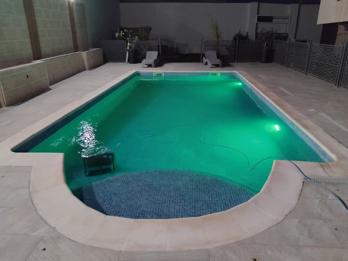 το κατάλυμα βρίσκεται στο ισόγειο μιας βίλας που βρίσκεται στην εξοχή και κοντά σε όλες τις παροχές. νοσοκομείο 1 χιλιόμετρο μακριά, αρκετά γενικά παντοπωλεία και παντοπωλεία σε απόσταση 700 μέτρων, αρκετά φαστ φουντ. η πισίνα παραβλέπεται εντελώς και είναι ιδιωτική. ιδανικό για ένα ζευγάρι με δύο παιδιά. διαθέσιμη βρεφική κούνια και καρεκλάκι μωρού. πλήρως εξοπλισμένο κατάλυμα,πιάτα, πετσέτες, σεντόνια. περιφραγμένο πάρκινγκ με ηλεκτρική πύλη και δωρεάν ιδιωτικό ηχητικό σήμα.