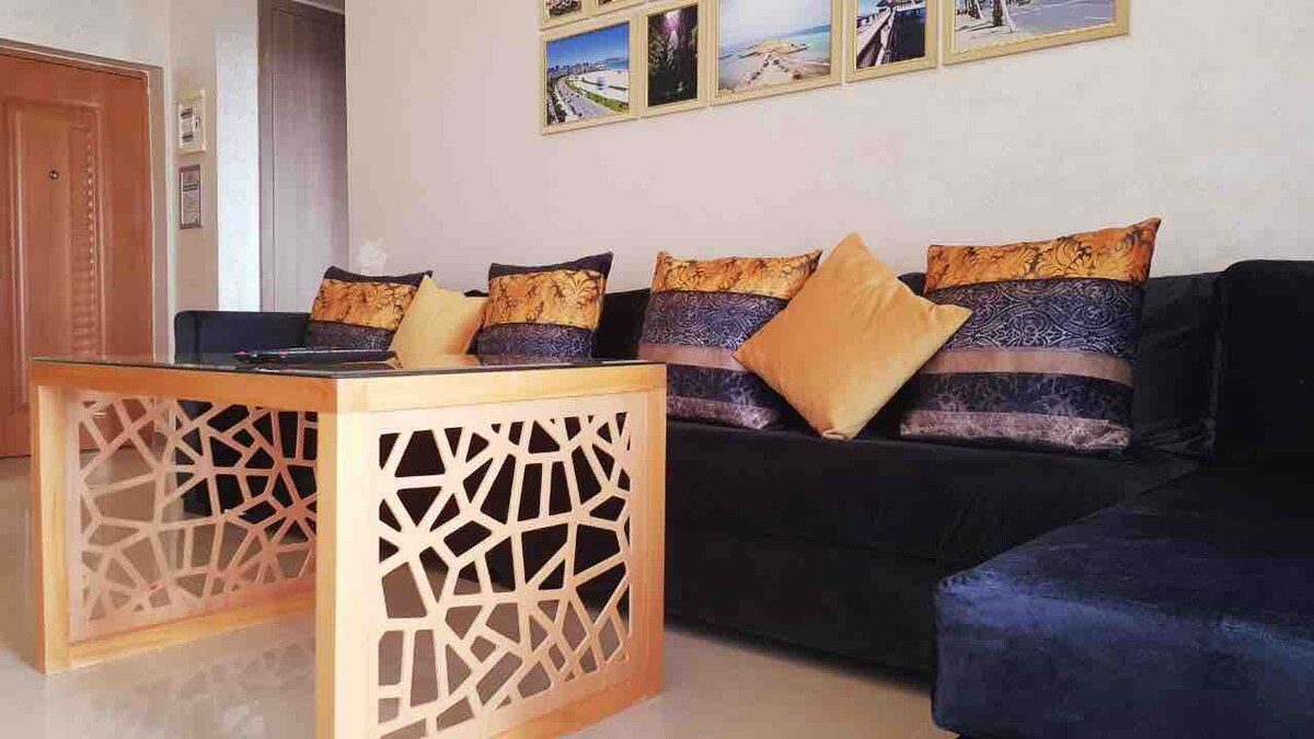Καλώς ήρθατε στο καλοκαιρινό σας καταφύγιο στη Marina Beach, ένα γοητευτικό διαμέρισμα 94 τ.μ. ιδανικό για μια χαλαρωτική απόδραση δίπλα στη θάλασσα. Απολαύστε ένα φωτεινό σαλόνι, πλήρως εξοπλισμένη κουζίνα και δύο μοντέρνα μπάνια. Μπείτε στη μεγάλη βεράντα με εκπληκτική θέα στην πισίνα και την παραλία. Βρίσκεται στην Marina Beach Residence με πισίνες, πρόσβαση στην παραλία και εστιατόρια σε κοντινή απόσταση, είναι το τέλειο μείγμα άνεσης, στυλ και ηρεμίας στο Τετουάν, M'diq.
