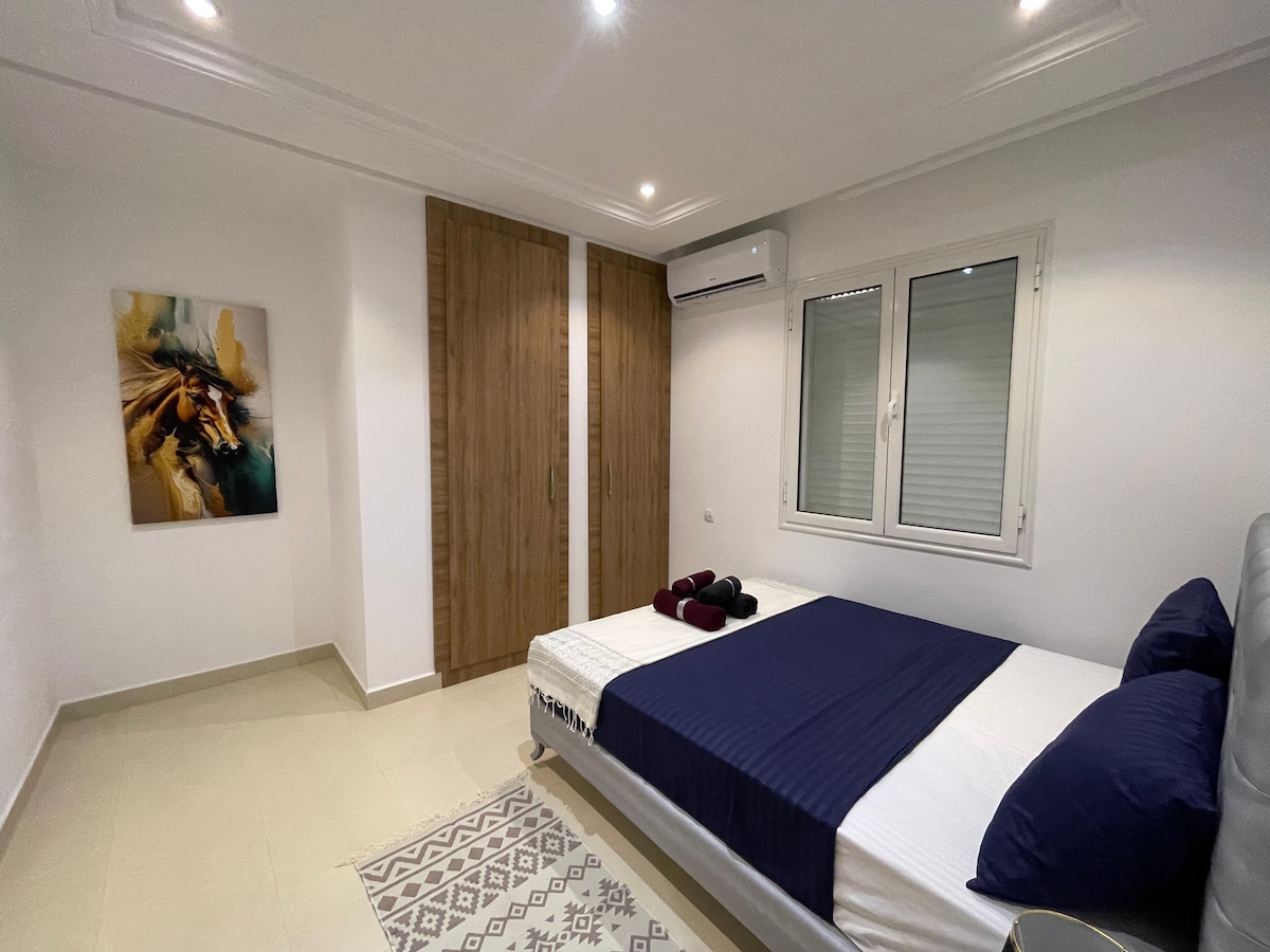 Όμορφο και πλήρως επιπλωμένο διαμέρισμα 5 λεπτά με τα πόδια από την παραλία. Η τοποθεσία είναι ιδανική, ανάμεσα στην τουριστική ζώνη, την παραλία και την παλιά πόλη (Medina). Μπορείτε να φτάσετε παντού με τα πόδια, συμπεριλαμβανομένων εστιατορίων, καταστημάτων, σούπερ μάρκετ, μπαρ, παραλίας και σουκ. Ασφαλής γειτονιά για βραδινές βόλτες και βραδινές εξόδους. Αυτό το διαμέρισμα 80 τετραγωνικών μέτρων διαθέτει 2 υπνοδωμάτια, σαλόνι, κουζίνα, τραπεζαρία, μπάνιο και μπαλκόνι. Ολόκληρο το διαμέρισμα, το σαλόνι και τα δύο υπνοδωμάτια διαθέτουν κλιματισμό.