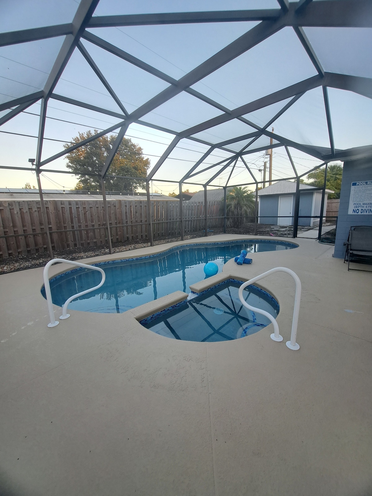 Welcome to your tropical getaway in the heart of Daytona Beach! Located 3 miles from the beaches & 12 minutes from Nascar Speedway. This home includes a large swimming pool surrounded by a HUGE private yard, ping pong table, BBQ grill, 3 bedrooms, 4 beds, 2 bathrooms, & 1 premium queen airbed. Every room has Smart TVs & fast Wi-Fi (500 Mbps). Our fully stocked kitchen includes an air fryer, rice cooker, blender & more! Lastly, our quiet & safe neighborhood will ensure a peaceful stay 😎🌴