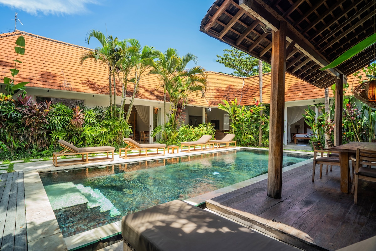 Κομψή βίλα 3BR με ιδιωτική πισίνα στο Μπινγκίν Ουλουβάτου που περιβάλλεται από διατηρημένα δέντρα teak. Οι μοντέρνοι εσωτερικοί χώροι, η καθημερινή καθαριότητα και η ασφάλεια με πύλη δημιουργούν μια εκλεπτυσμένη αλλά χαλαρή ατμόσφαιρα. Λίγα λεπτά από παραλίες και καφετέριες. Ιδανικό για ταξιδιώτες που ενδιαφέρονται για τον σχεδιασμό και αναζητούν άνεση χωρίς υπερβολές.