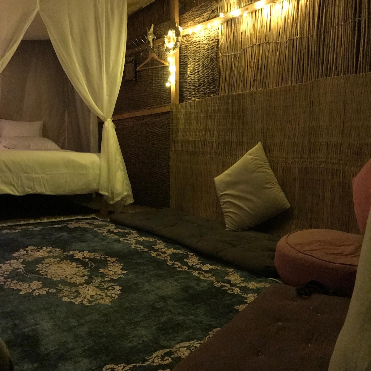 Το Beit Bahiga είναι ένα γαλήνιο σπίτι σε στιλ θόλου, φωλιασμένο στα ιερά βουνά της Αγίας Αικατερίνης. Σχεδιασμένο με πνεύμα wabi-sabi, συνδυάζει φυσικές υφές, γήινη κομψότητα και συνειδητή απλότητα. Απολαύστε την παρατήρηση των αστεριών δίπλα στη φωτιά, μαγειρέψτε με τα αγαπημένα σας πρόσωπα ή απλά χαλαρώστε σε μια γαλήνια ηρεμία. Με εκπληκτική θέα, τη ζεστασιά των Βεδουίνων και προσεγμένες πινελιές, αυτή η απόδραση είναι μοναδική.