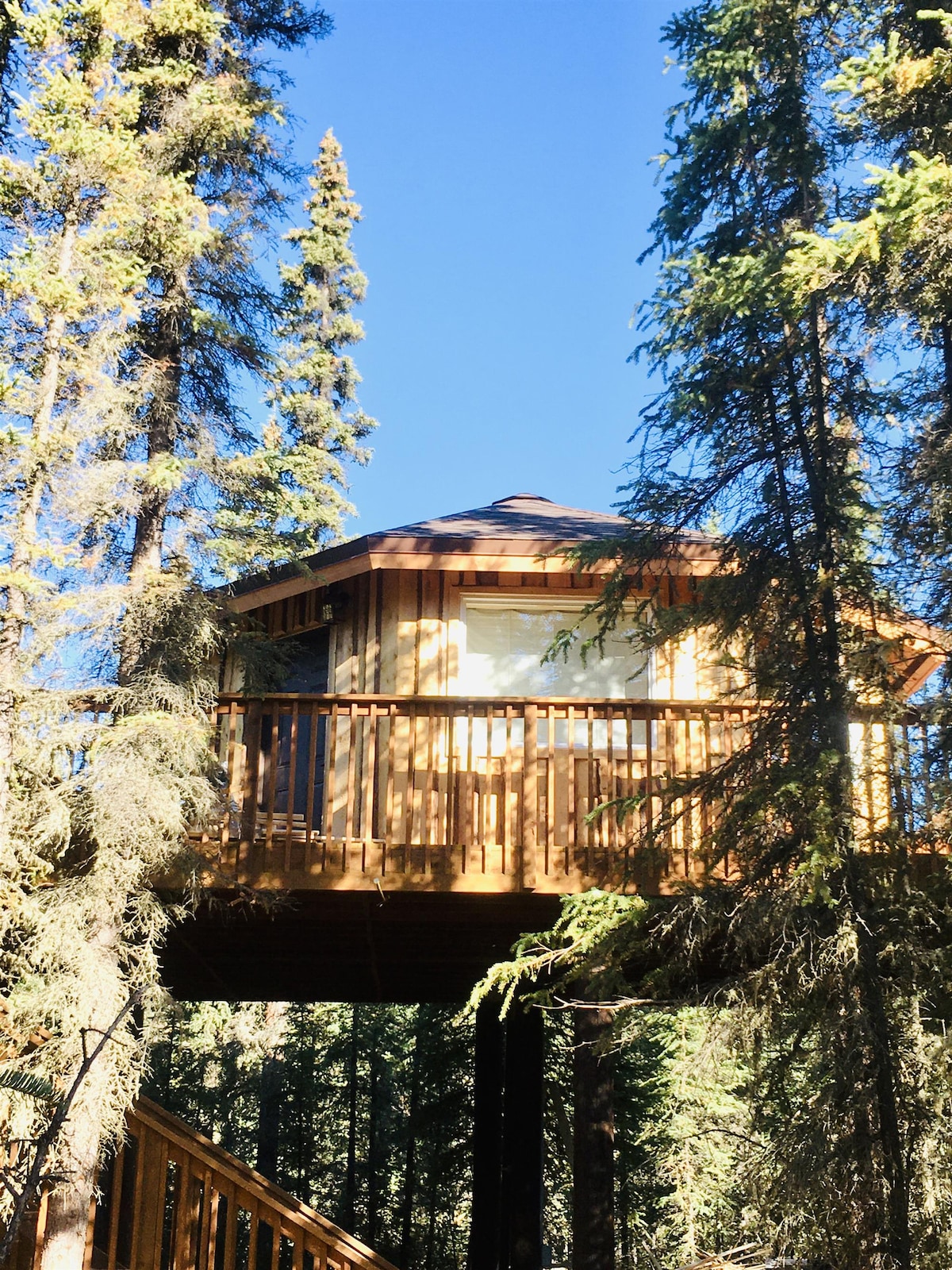 Bring out your inner child with a stay in our fully equipped treehouse cabin! Spacious bathroom with a large shower, kitchenette, full size bed and full size futon, plus a loft and fairy lights. It has everything you'd have on the ground, but 14 feet up! View the Aurora, or enjoy the midnight sun from your wrap around deck! This is a magical place... you'll never forget a stay in your very own Alaskan Treehouse! ! Coffee bar and tea provided! Large circle drive and trailer parking area!