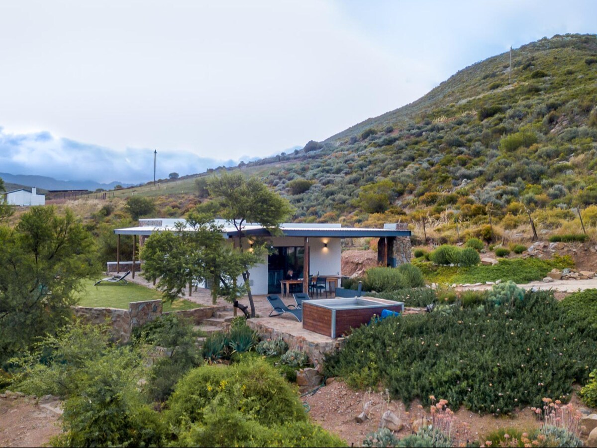 Τα εξοχικά με αυτοεξυπηρέτηση του SKYROO είναι η ιδανική απόδραση και σας καλωσορίζουν να απολαύσετε τη φύση στο Μικρό Καρού στα καλύτερά της! Είναι όμορφα επιπλωμένα και εξοπλισμένα με κλινοσκεπάσματα και πετσέτες υψηλής ποιότητας. Κάθε εξοχικό μπορεί να φιλοξενήσει τέσσερα άτομα. Και τα δύο υπνοδωμάτια έχουν ιδιωτικό μπάνιο. Στο σαλόνι και την τραπεζαρία ανοιχτού τύπου, ένα εσωτερικό τζάκι, ήδη στοιβαγμένο, θα σας ζεστάνει μια κρύα νύχτα. Για εκείνα τα ευχάριστα βράδια που περνάτε κάτω από τον εκπληκτικό ουρανό του Karoo, σας περιμένει ένας χώρος μπάρμπεκιου και "συζήτησης".