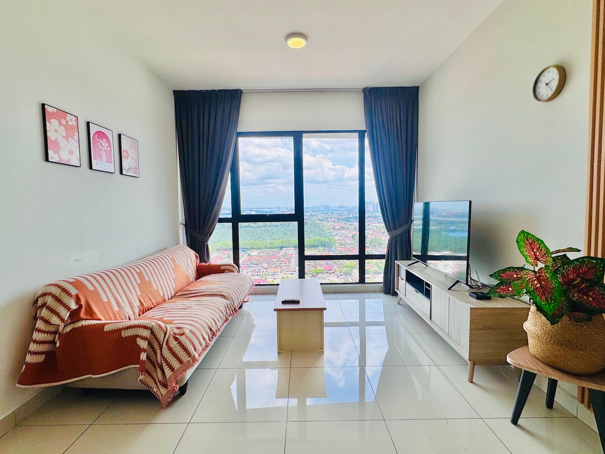 Πολυτελής διαρρύθμιση και ευρύχωρη μονάδα 3 υπνοδωματίων με μπανιέρα! Εξαιρετικής ποιότητας κρεβάτια King & Queen size που εγγυώνται τον καλό ύπνο σας εδώ με εκπληκτική θέα στο Midvalley Mall και την πόλη JB. Έχουμε έξυπνη τηλεόραση εξοπλισμένη με εφαρμογές YouTube και Netflix! Επίσης, το μηχάνημα καθαρισμού νερού που διευκολύνει τη διαμονή σας εδώ! Περιβάλλεται από εμπορικό κέντρο και μεγάλη γκάμα τοπικών νόστιμων φαγητών - 2 λεπτά με το αυτοκίνητο για το Midvalley Southkey JB - 5 λεπτά για το KSL City Mall - 8 λεπτά για το City Square Mall & Custom JB