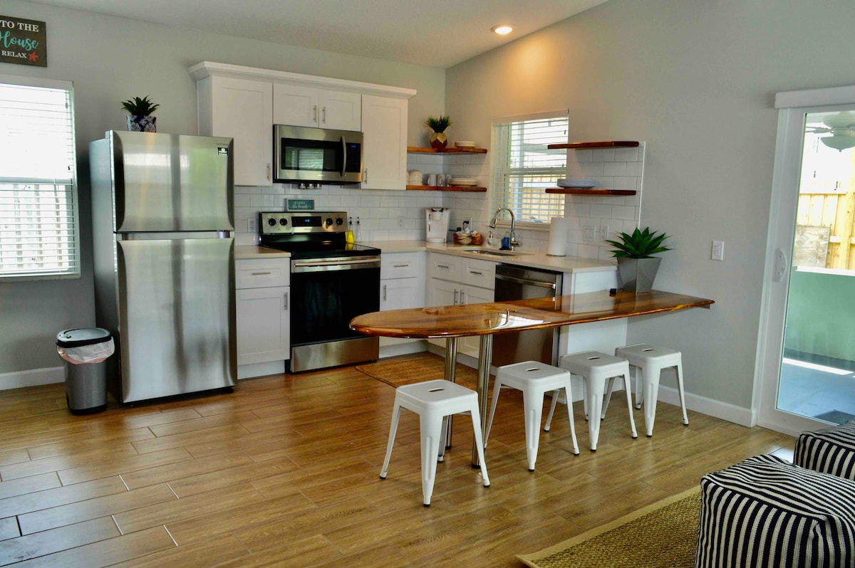 ☀️ Spring is Here! 3 Min walk to the Beach!!! Welcome to Town Center Cottages — your cozy, walk-to-everything beach retreat in the heart of Cocoa Beach. Whether you're watching a rocket launch from the sand, playing in the surf with our free beach gear, or grilling dinner after a day at Kennedy Space Center, this is the place where your family memories are made What you'll Love ❤️KING BED! ❤️Beach chairs, wagon, umbrella, cooler ❤️Free WiFi & Parking ❤️Fenced Yard!