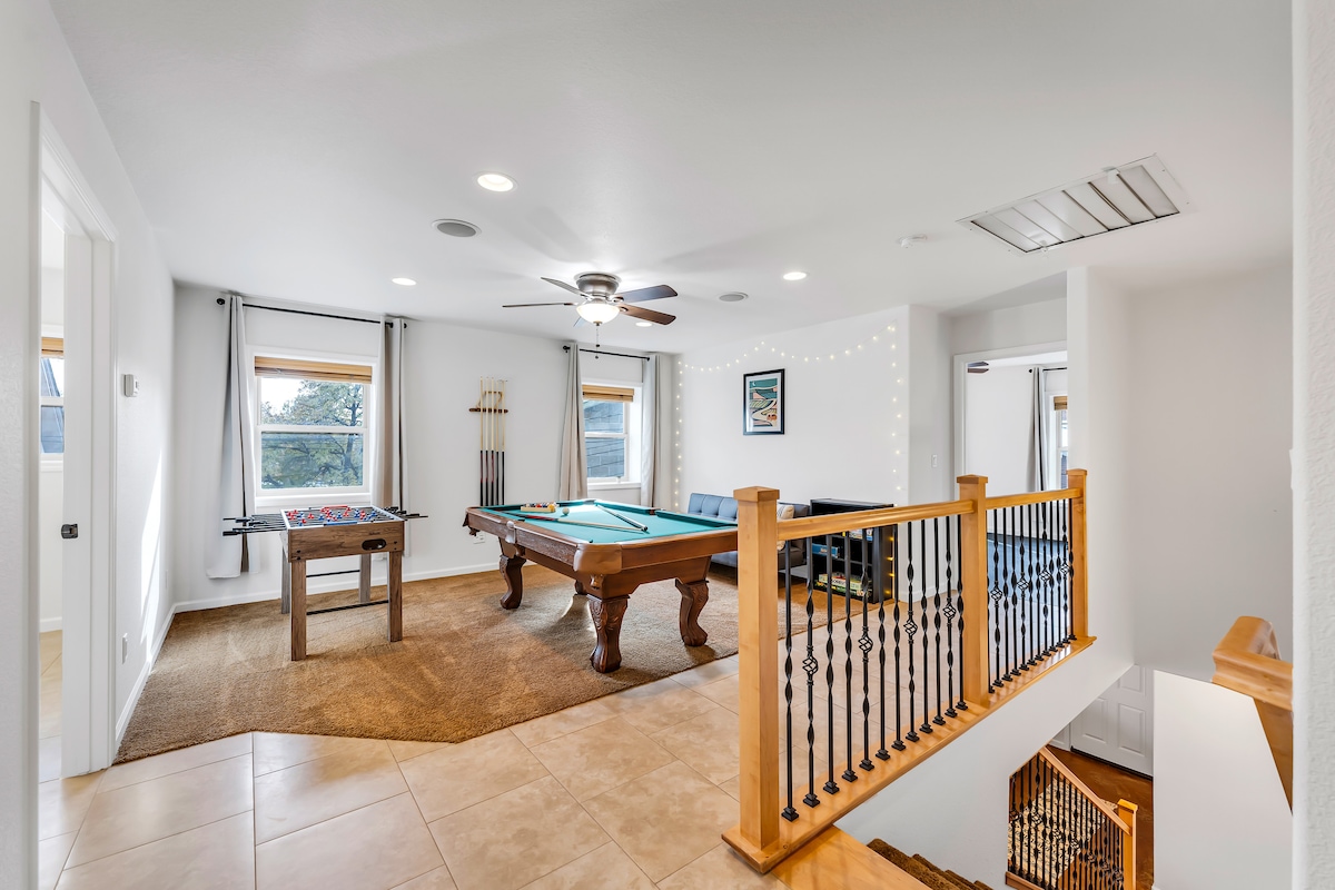 Escape to our spacious 5-bedroom retreat, where luxury meets convenience just two blocks from Midtown Reno. Sink into warmth with radiant heating, unwind in the dual steam shower, or challenge friends at the pool and foosball tables. Stay fit in the home gym, savor complimentary coffee in the fully stocked kitchen, & stream your favorites on the smart TV. Enjoy high-speed WiFi, a dedicated workspace, and room for up to 16, all just minutes from downtown & 45 minutes from Lake Tahoe’s adventures!