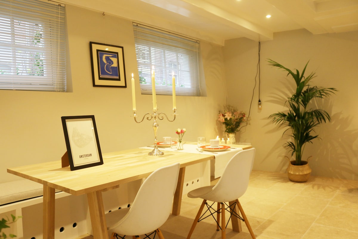 Δεν επιτρέπονται τα πάρτι στο BnB. Αυτό το πολυτελές διαμέρισμα βρίσκεται σε κορυφαία τοποθεσία. Κοντά στα πιο όμορφα μουσεία, εμπορικούς δρόμους και εστιατόρια. Το διαμέρισμα βρίσκεται στο υπόγειο ενός μνημειώδους κτιρίου, όπου έχετε πρόσβαση στον ιδιωτικό σας όροφο. Απέχει μόλις 20 λεπτά από το αεροδρόμιο, η άφιξη και η αναχώρηση είναι μια ομαλή εμπειρία και το διαμέρισμα βρίσκεται σε κοντινή απόσταση από τα πιο διάσημα μουσεία του Άμστερνταμ. Το διαμέρισμα είναι εξοπλισμένο με όλες τις ανέσεις και τις πολυτέλειες.