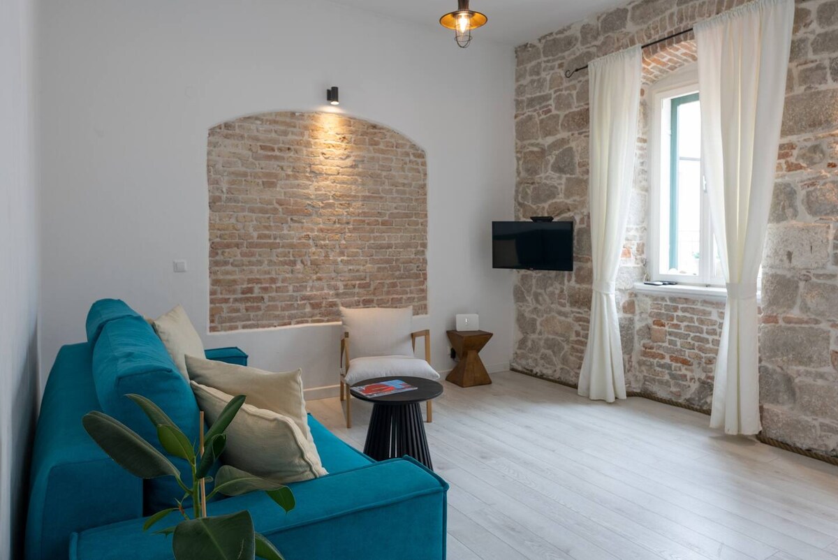 Διαμέρισμα κορυφαίας κατηγορίας στην πιο γραφική πλατεία της πόλης που προσφέρει μια μοναδική εμπειρία διακοπών. Αυτό το πολυτελές κατάλυμα είναι καλαίσθητα και κομψά επιπλωμένο και εξαιρετικά εξοπλισμένο. Βρίσκεται στον πρώτο όροφο ενός διαχρονικού ιστορικού κτιρίου στην καρδιά της πόλης, δίπλά στο παλάτι του Διοκλητιανού, και απέχει μόλις λίγα μέτρα από τον παραλιακό δρόμο. Εξαιρετικό, ευρύχωρο και εξαιρετικά άνετο κατάλυμα σε μοναδική τοποθεσία UNESCO. Όλα όσα μπορείτε να ονειρευτείτε στο Σπλιτ είναι τόσο κοντά!