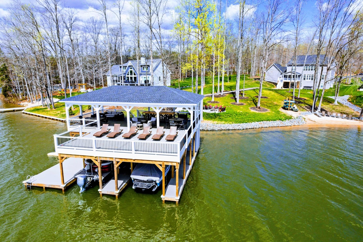 Dream Big Oasis is a brand new lakefront home with amazing views on the Private Side of Lake Anna. Enjoy a large serene lot with 250' of waterfront, a private sandy beach, and private dock and boat house with tiki bar and all the fun water toys. Take in the gorgeous lake views while relaxing beside an outdoor fire pit or on the large furnished deck with outdoor dining options. Kick back in a super comfy recliner in our Home Movie Theater room with 85" 4K Smart TV. This home is located on the pr