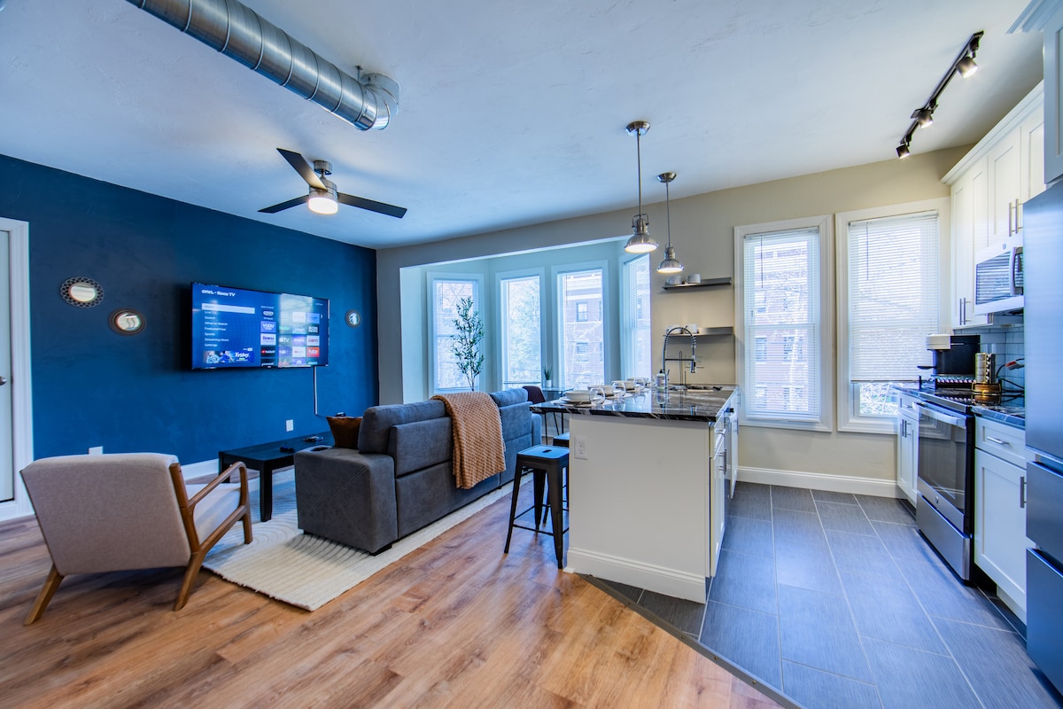 Απολαύστε ένα κομψό διαμέρισμα 1 υπνοδωματίου στον πρώτο όροφο, με μια γκουρμέ κουζίνα εξοπλισμένη με υψηλής ποιότητας συσκευές και έναν ευρύχωρο χώρο καθιστικού, ιδανικό για χαλάρωση ή διασκέδαση. Το υπνοδωμάτιο με διπλό κρεβάτι προσφέρει έναν άνετο ύπνο. Το Wi-Fi υψηλής ταχύτητας και ο ειδικός χώρος εργασίας το καθιστούν ιδανικό για όσους ταξιδεύουν για επαγγελματικούς λόγους ή για εργασία εξ αποστάσεως. Πρόσβαση σε κοινόχρηστο πάρκινγκ (6 θέσεις, εξυπηρέτηση με σειρά προτεραιότητας). Βρίσκεται κοντά στο West Penn Hospital και στο UPMC Shadyside, ιδανικό για ζευγάρια, οικογένειες που επισκέπτονται ή για διαμονές για ιατρικούς λόγους.