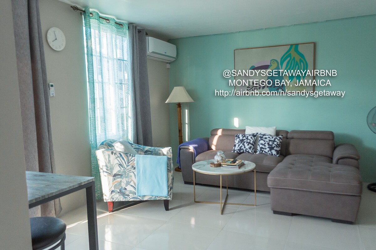 This gorgeous apartment has been furnished to feel like a true getaway. It’s the ideal retreat for an adventurous & up-scale stay, located in a gated community that is close to the absolute heart of Montego Bay. We believe it’s the ultimate location to experience this part of the island. At only 10 minutes walking distance from Doctor's Cave Beach and the main Hip Strip, you will be very close to all the action. Settle in by zoning out with family or friends and enjoy your getaway.
