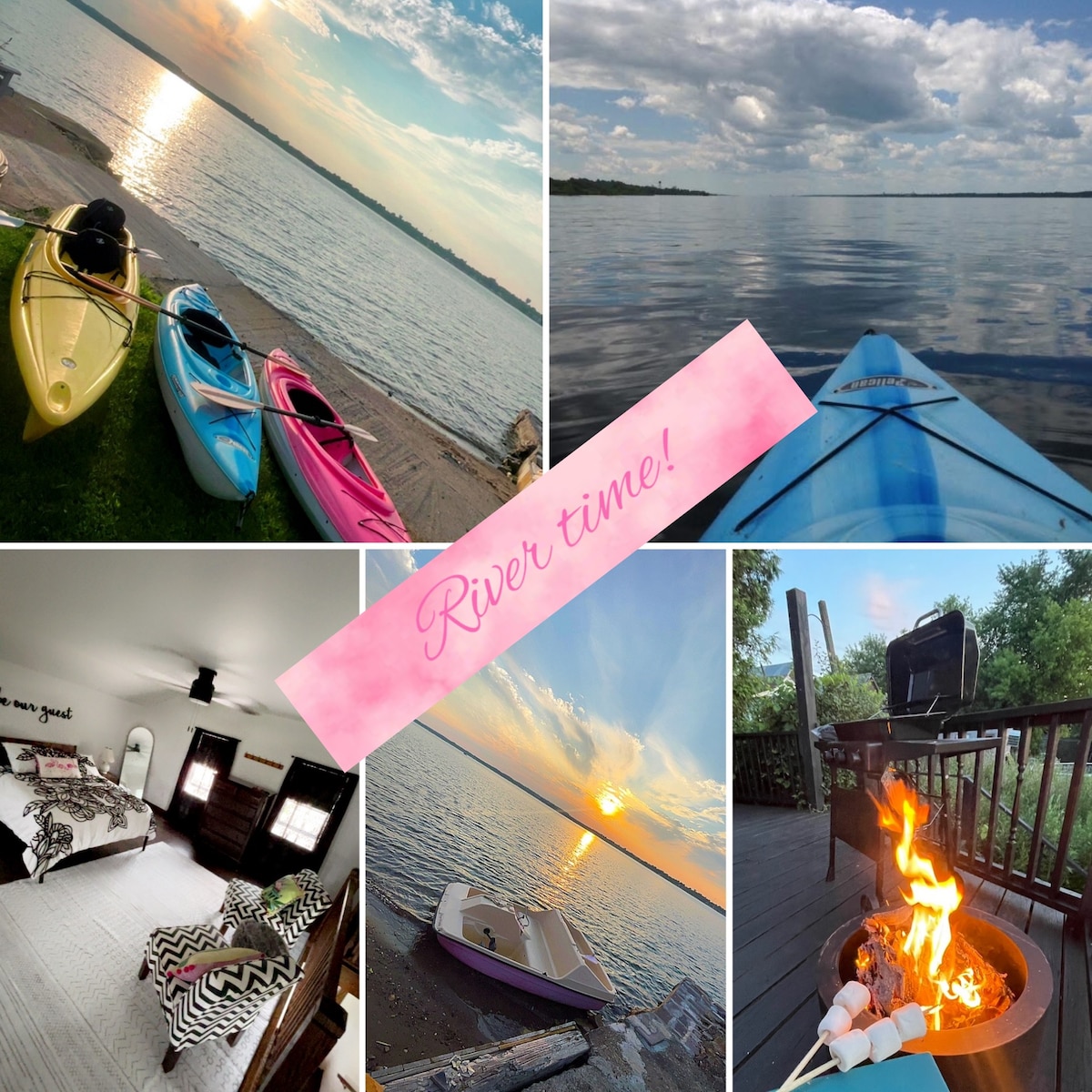 Entire 2 story cottage located on the St. Lawrence River fully stocked with necessary amenities so you feel right at home & much more! Washer/dryer, Queen bed & twin over full bunk bed. Snuggle up in the cozy glamping igloo on the deck for the winter. Spacious deck with gas grill, fire pit and a huge yard on the river with beach area. Perfect home away home & discounts for traveling medical professionals and tradespeople. Decorated for all seasons. Use Kayaks & paddle boat