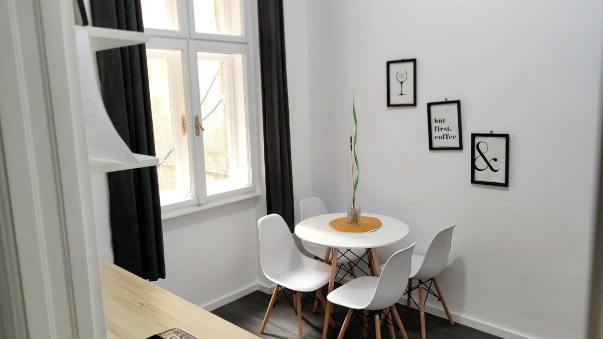 Ένα αρμονικό, μοντέρνο και όμορφα σχεδιασμένο στούντιο για δύο άτομα, που περιβάλλεται από όλα τα γεγονότα της πόλης, αλλά βρίσκεται σε μια ήσυχη τοποθεσία. Ο χώρος είναι μια ενιαία μονάδα και αποτελείται από σαλόνι, κουζίνα που χωρίζεται με τραπέζι μπαρ, χώρο εργασίας, χωλ με άνετο ντουλάπι και μπάνιο. Το γαλλικό μπαλκόνι προσφέρει μια όμορφη και ευρεία θέα καθώς και καλό φωτισμό. Το στούντιο είναι πλήρως ανακαινισμένο και τα έπιπλα είναι καινούρια και μοντέρνα. Αυτό το κατάλυμα θα σας προσφέρει την άνεση που σας αξίζει.