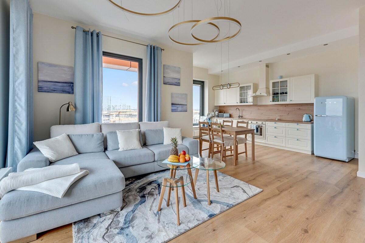 Μπλε και διασκεδαστικό διαμέρισμα δίπλα στο ποτάμι με γυμναστήριο και σάουνα