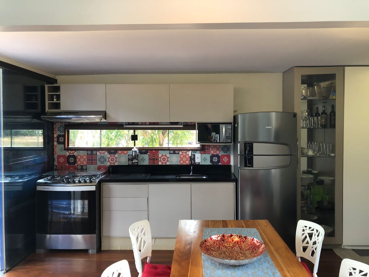 Εσείς που θέλετε να περάσετε μια ευχάριστη στιγμή ανάμεσα στα δέντρα σε μια έκταση 20.000 τ.μ. κοντά στο κέντρο του Πόρτο Βέλχο σε ένα σπίτι βιώσιμης κατασκευής, με κοτόπουλα στην αυλή, πουλιά και μια διατηρημένη βλάστηση του Αμαζονίου, με όλες τις ανέσεις. Κλιματισμός, τηλεόραση, κρεβάτι, κλινοσκεπάσματα και μπάνιο, καθώς και χώρος για μπάρμπεκιου. Διαθέτουμε μια μικρή πισίνα 2 Χ 2 μέτρα με πίδακες νερού, χωρίς λειτουργία θέρμανσης, μόνο με κρύο νερό. Όλα αυτά σας περιμένουν.
