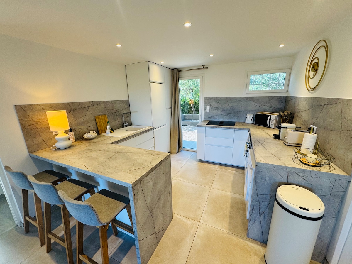 Χαλαρώστε στο Casa Elsa – Maisons Mimosa, ένα σπίτι με διαμορφωμένο κήπο που βρίσκεται σε ιδιωτική κατοικία με κοινόχρηστη πισίνα, στην καρδιά του κόλπου του Saint-Tropez. Πλήρως ανακαινισμένο και κλιματιζόμενο, προσφέρει ένα ήσυχο και πράσινο περιβάλλον, ιδανικό για οικογενειακές διακοπές ή διαμονές με φίλους. Η παραλία απέχει 15 λεπτά με τα πόδια και το κέντρο της Σαιντ Μαξίμ 10 λεπτά με το αυτοκίνητο. Μια ιδανική τοποθεσία για να εξερευνήσετε το Σεν Τροπέ, το Γκριμό και το Γκασάν.