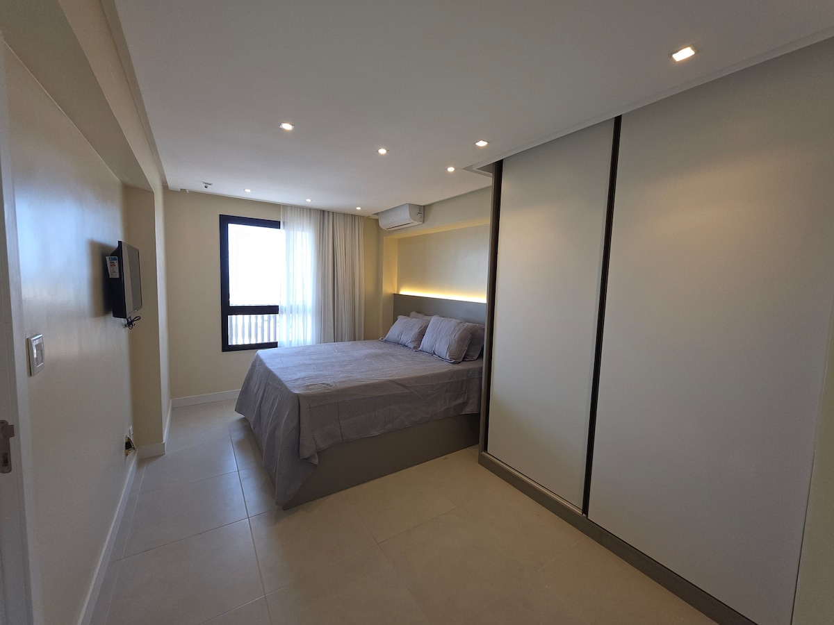 Εντυπωσιακό διαμέρισμα με εκλεπτυσμένη διακόσμηση, 2 υπνοδωμάτια, ένα από τα οποία είναι σουίτα, κλιματισμός σε όλα τα δωμάτια με ατομικό έλεγχο, θέα στη θάλασσα. Φιλοξενεί άνετα 6 άτομα (2 διπλά κρεβάτια + 1 καναπές-κρεβάτι). Απολαύστε τις ανέσεις του κτιρίου, όπως την απίστευτη πισίνα με ΘΕΑ ΘΑΛΑΣΣΑ στην ταράτσα, το πλήρως εξοπλισμένο γυμναστήριο με κλιματισμό και αίθουσα spinning, 2 αίθουσες coworking και παιδική χαρά. Αφήστε τον εαυτό σας να παρασυρθεί από τη μαγεία της Μπαΐα και αρχίστε να δημιουργείτε αξέχαστες αναμνήσεις!
