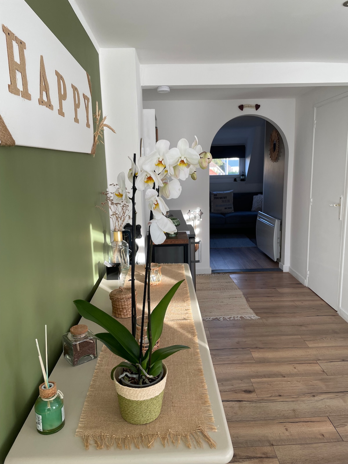 Ελάτε να απολαύσετε ένα κομψό κατάλυμα με θέα στη θάλασσα, στο κέντρο του Berck, πολύ κοντά σε καταστήματα και εστιατόρια. Το διαμέρισμα βρίσκεται στο ισόγειο και διαθέτει θέση στάθμευσης σε μια μικρή ασφαλή ιδιωτική κατοικία. Θα βρείτε μια μοντέρνα διακόσμηση με όλα όσα χρειάζεστε για να περάσετε μια υπέροχη διαμονή. Η τοποθεσία και η θέα είναι τα δύο κύρια πλεονεκτήματα του μικρού μου διαμερίσματος. Μόλις παρκάρετε το αυτοκίνητό σας, μπορείτε να κάνετε τα πάντα με τα πόδια.