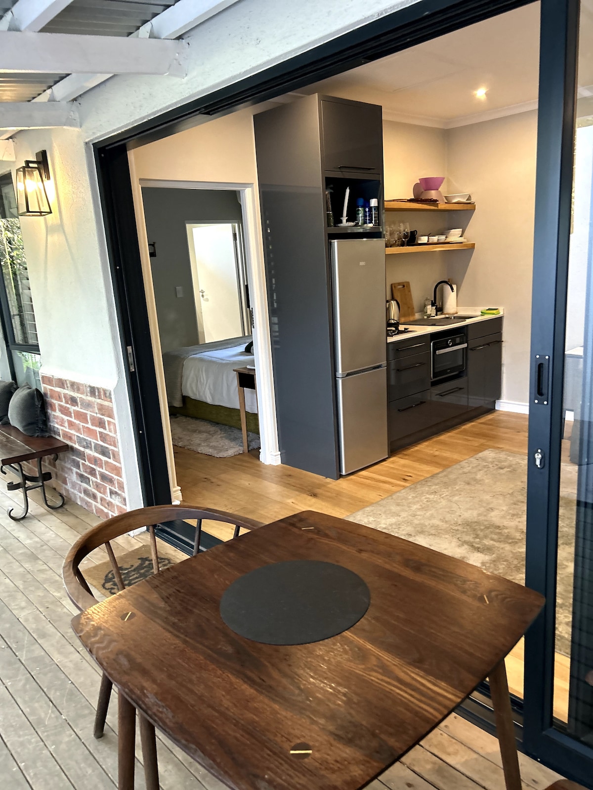 Το στούντιο μας βρίσκεται κοντά στο κέντρο της πόλης και σε κοντινή απόσταση με τα πόδια από τα περισσότερα αξιοθέατα του Stellenbosch και το κέντρο τουριστικών πληροφοριών. Αν και δεν είναι πολύ μεγάλο, θα λατρέψετε το άνετο στούντιο μας, έχει έναν υπέροχο στεγασμένο χώρο χαλάρωσης για να απολαύσετε και περιβάλλεται από έναν πράσινο κήπο. Ο χώρος μας είναι κατάλληλος για ζευγάρια και μοναχικούς λάτρεις της περιπέτειας. Διαθέτει ανοιχτό χώρο με μικρή κουζίνα, άνετο υπνοδωμάτιο και ντους. Εύκολη πρόσβαση με τα πόδια στην πόλη για να απολαύσετε όλα όσα έχει να προσφέρει το Stellenbosch.