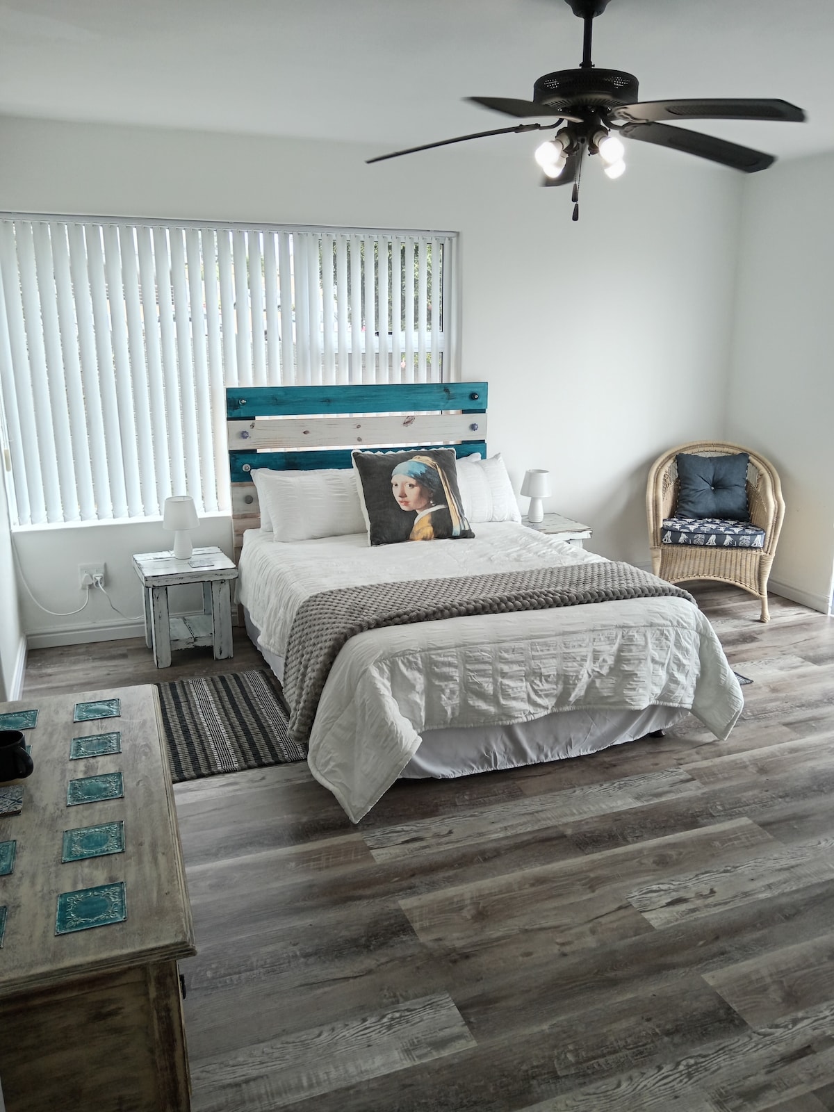 Self catering spacious one bedroom flat on upper floor with two additional beds in the lounge. Private entrance and off street parking. Stunning views over tidal river from balcony. Braai facilities available. Main swimming beach only a 5 minute drive or 15 minute walk. Nature garden opposite property. 5 min walk to pub, restaurant, tearoom, laundromat and coffee shop. Enjoy rowing on the river in our canoe or kayak at high tide from the garden steps.