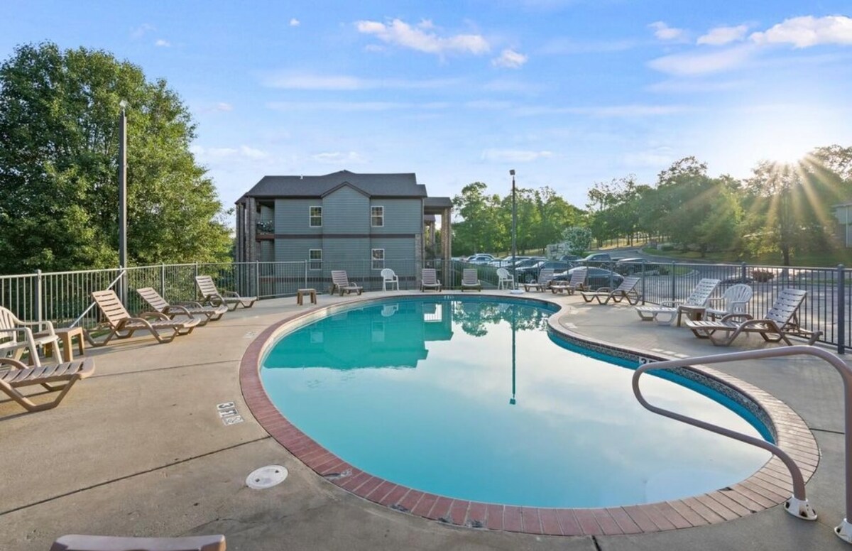 Ανακαλύψτε την πολυτέλεια του Stonebridge, μιας πολυτελούς κοινότητας λίγα λεπτά από το Silver Dollar City και την Branson Strip με 24ωρη ασφάλεια, πισίνες, τένις, γκολφ και πολλά άλλα. Διαμέρισμα 1.112 τ.μ. με πλήρως εξοπλισμένη κουζίνα, αίθριο με σήτα, king size κρεβάτι στο κυρίως δωμάτιο, queen size κρεβάτι στο δεύτερο δωμάτιο και queen size κρεβάτι στο σαλόνι. 3 μεγάλες smart τηλεοράσεις, συσκευές πλήρους μεγέθους, όπως καφετιέρα και μύλος άλεσης Bunn, ξεχωριστή τραπεζαρία και πλυντήριο εντός του δωματίου.Ιδανικό για οικογένειες ή μεμονωμένους ταξιδιώτες! Χρέωση παροχής: 7 $/διανυκτέρευση ανά αυτοκίνητο (έως 2).