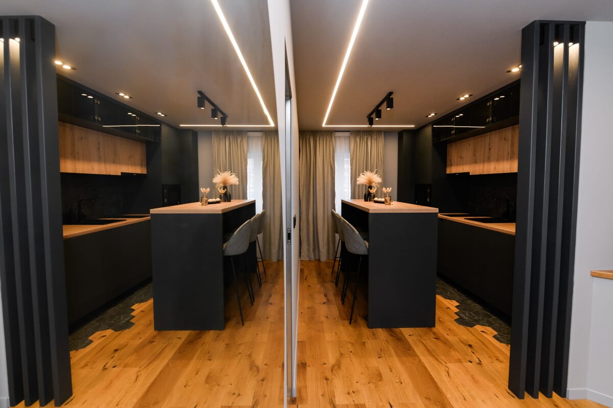 Un apartament modern, compus din 2 dormitoare, bucatarie tip open space, o baie generoasă și o terasă cu vedere panoramică asupra zonelor istorice ALBA CAROLINA. Este situat central, la 3 minute de mers pe jos de Cetatea Alba Iulia, Catedrala Reîntregirii, Muzeul Unirii, Piața Cetății etc. Dormitoarele sunt mobilate cu paturi matrimoniale, cu TV Smart. Proprietatea dispune de parcare gratuită, internet Wifi, aer condiționat, Tv în fiecare cameră, bucătarie complet mobilată și utilată.