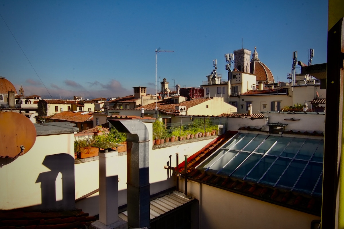 Splendid apartment on the 5th floor with elevator. Located in a high-class building in one of the most important pedestrian street in the historic center of Florence. You will enjoy the magnificent view from the terraced arranged with a 360 view on the Duomo and all the city monuments till the Piazzale Michelangelo.