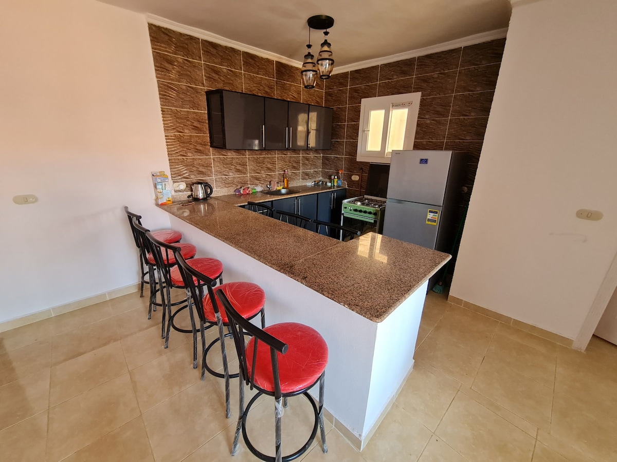 Χαλαρώστε με όλη την οικογένεια σε αυτόν τον ήσυχο χώρο διαμονής. Παραθαλάσσια βίλα στο Ras Sudr Αποδράστε στη γοητευτική παραθαλάσσια βίλα μας στο Ras Sudr, που προσφέρει 3 υπνοδωμάτια, 2 μπάνια, πλήρως εξοπλισμένη κουζίνα και βεράντα στον τελευταίο όροφο με εκπληκτική θέα στη θάλασσα. Απολαύστε άμεση πρόσβαση στην παραλία, έναν μικρό κήπο. Ιδανικό για οικογένειες και ομάδες που αναζητούν χαλάρωση ή περιπέτεια δίπλα στην Ερυθρά Θάλασσα. Κάντε κράτηση για τη διαμονή σας σήμερα! Ανυπομονούμε να σας καλωσορίσουμε!