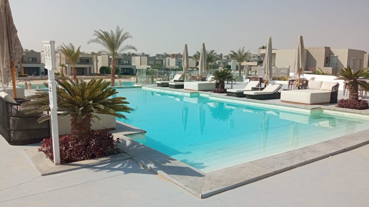 Μείνετε στην πολυτελή, κομψή βίλα 4 υπνοδωματίων στην Azha με διπλό ιδιωτικό κήπο με εκπληκτική θέα στην πισίνα και τη λιμνοθάλασσα. Απολαύστε πολυτελή έπιπλα, WiFi υψηλής ταχύτητας, 2 Smart TV, premium ηχοσύστημα και πλήρες κλιματιστικό. Η έξυπνη κουζίνα διαθέτει φούρνο μικροκυμάτων, πλυντήριο πιάτων, πλυντήριο ρούχων, φριτέζα αέρα, κουζίνα και φούρνο και μεγάλο ψυγείο. Με 7 άνετα κρεβάτια. Αυτή η βίλα είναι ιδανική για οικογένειες που αναζητούν μια χαλαρωτική, πολυτελή απόδραση. επιπλέον 1500 L.E ανά άτομο καθ' όλη τη διάρκεια της φιλοξενίας έως 1 εβδομάδα (για πρόσβαση στην παραλία)