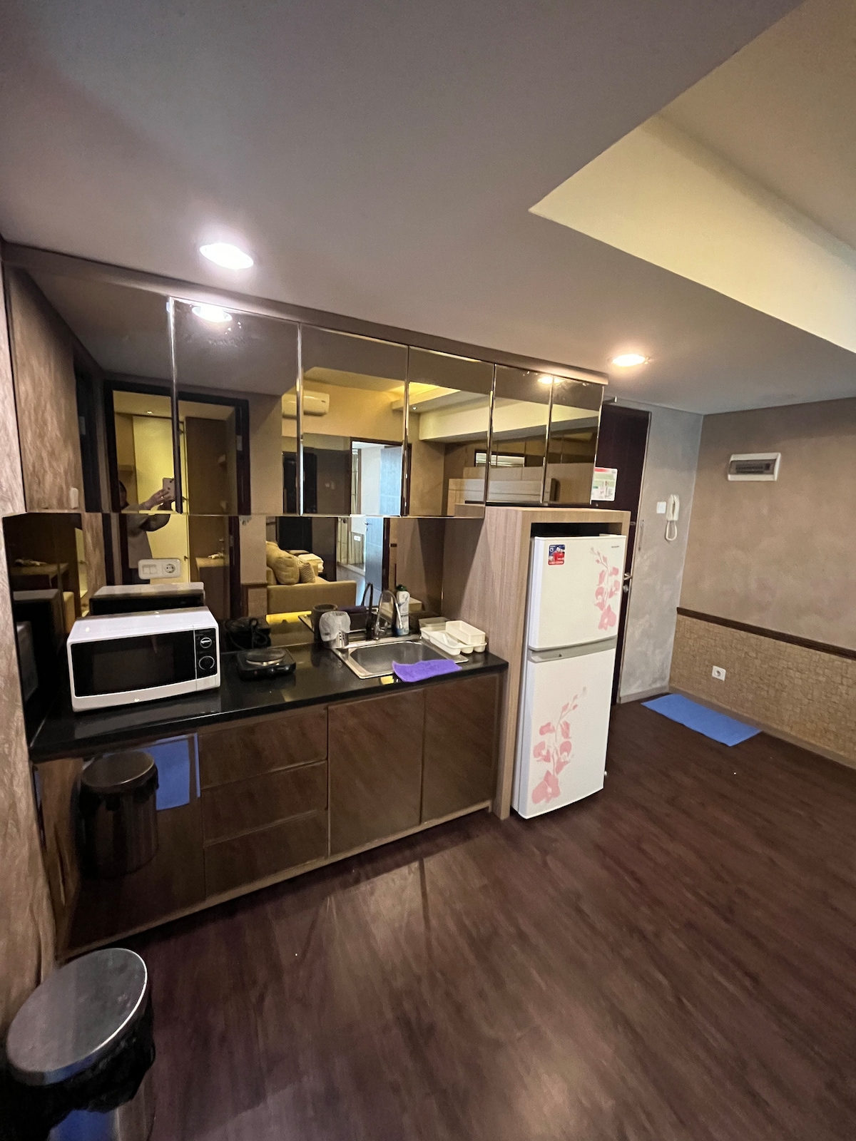 Our location is on La Grande Apartment, right next to 2 large malls and only 800m from the iconic Braga Street At the 18th floor our unit provides a sense of exclusivity, allowing guests to enjoy both tranquility and breathtaking cityscapes. The fully equipped kitchen ensures convenience, This unit combines sophistication and convenience for an unforgettable stay in the heart of Bandung. Kindly note that parking —both for motorcycles and cars— is cashless only 🙏☺️