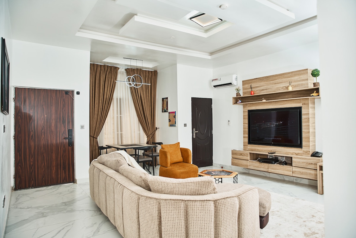 Προσεκτικά επιπλωμένο διαμέρισμα 3 υπνοδωματίων σε ένα εξαιρετικό, καλά σχεδιασμένο κτήμα στο Wuye της Abuja. Κάθε υπνοδωμάτιο διαθέτει ειδικό χώρο εργασίας με κατάλληλα τραπέζια και καθίσματα, ιδανικό για όσους ταξιδεύουν για επαγγελματικούς λόγους, τηλεργασία και μακροπρόθεσμες διαμονές. Απολαύστε ήρεμο, μοντέρνο εσωτερικό, πλήρως εξοπλισμένη κουζίνα και μικρή κουζίνα, αξιόπιστη παροχή ρεύματος και νερού και ένα ασφαλές, γαλήνιο περιβάλλον με εύκολη πρόσβαση σε βασικούς επιχειρηματικούς και lifestyle χώρους. Σχεδιασμένο για άνεση, παραγωγικότητα και μια πραγματική εμπειρία καλωσορίσματος στο σπίτι.