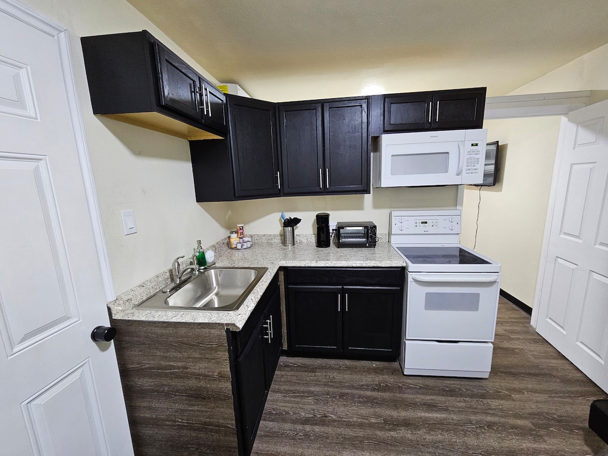 Ελάτε να απολαύσετε τις διακοπές σας στο πρόσφατα ανακαινισμένο στούντιο, είναι ένα στούντιο/ADU 400 τετραγωνικών ποδών. Ένα στούντιο σχεδιασμένο για όλες τις ανάγκες σας, είτε θέλετε να μείνετε για μεγάλο χρονικό διάστημα είτε για μικρό χρονικό διάστημα, αυτό το στούντιο είναι! Πλήρως εφοδιασμένο, πλυντήριο και στεγνωτήριο και μια νέα μονάδα κλιματισμού/θέρμανσης! Όλα σε μια ήσυχη γειτονιά! Το δωμάτιο διαθέτει ένα διπλό κρεβάτι καθώς και ένα διπλό στρώμα αέρα για επιπλέον ύπνο και καναπέ. Διατίθεται Wifi/NetfIix/Hulu/Disney plus. 15 λεπτά από την περιοχή με τα μπαρ! Ελάτε να μείνετε στο αγαπημένο σας μέρος διακοπών!