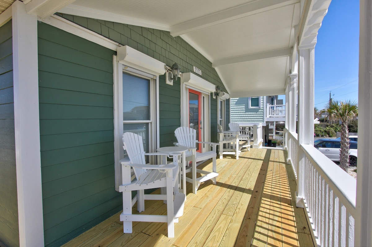 Click dates on calendar to see our reduced rates!!! "Little House on The Beach" is a beautiful example of early Surf City allure that captures the true essence of simple island life. At NO ADDITIONAL FEE, provided are new fresh Linens, Towels, condiments, full spice drawer, pots, pans, silverware and much more. Enjoy meals on the porch while watching for Dolphins and Whales. Enjoy new smart tvs, each with cable and high speed WIFI. Beach umbrellas, surf/ boogie boards beach chairs!!