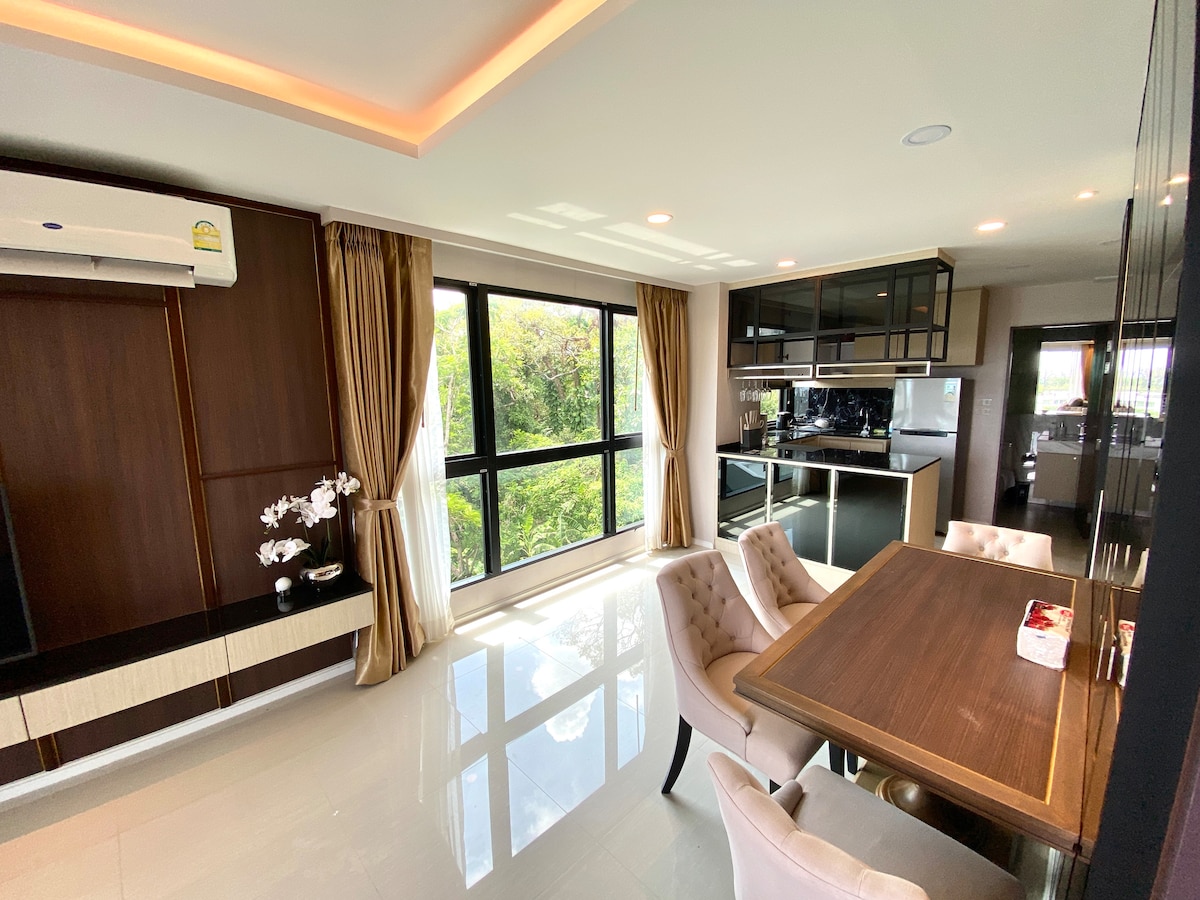 Read full description before booking, including "Show more". This penthouse's contemporary design and panoramic views will sweep you off your feet. Prepare dinner and hang out by the kitchen countertop, or watch Netflix with a view, this penthouse can make most activities memorable. Just 650m to the beach and located in project featuring a huge swimming pool, as well as a gym and sauna. The penthouse is well equipped with lots of amenities and close to restaurants, massage parlours, bars.