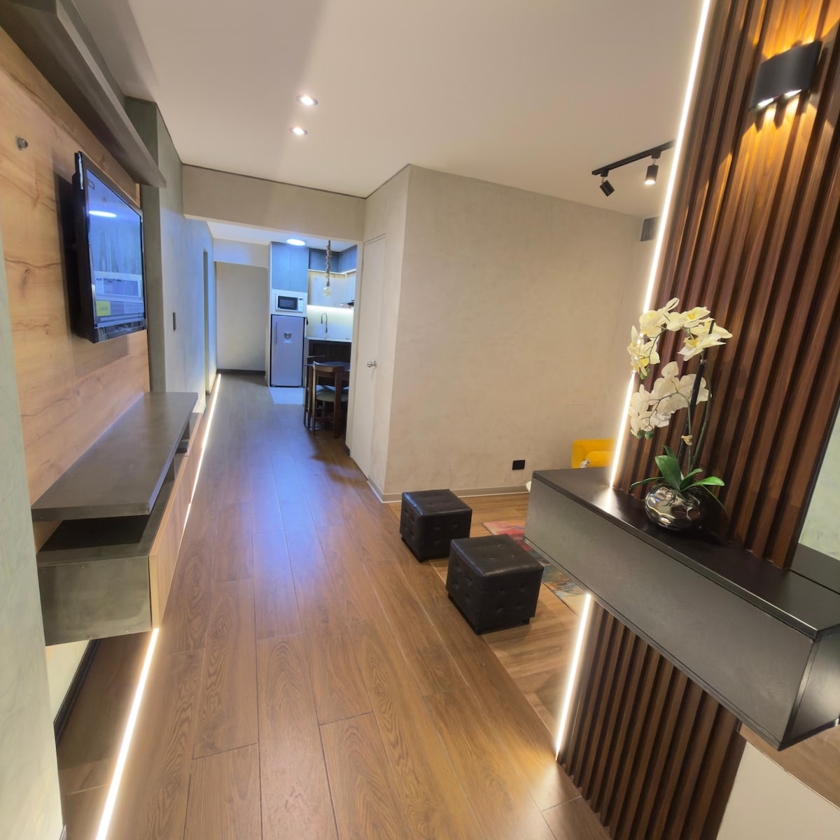 Μοντέρνο και φιλόξενο διαμέρισμα κοντά στο οικονομικό κέντρο του Σαν Ισίντρο και λίγα λεπτά από το Μιραφλόρες και το Μπαρράνκο. Ιδανικό για σύντομες ή μεγάλες διαμονές, με απόλυτη ιδιωτικότητα, έξυπνη κλειδαριά και εύκολη πρόσβαση. Ευρύχωρος χώρος με σαλόνι, εξοπλισμένη κουζίνα και μικρό μπαλκόνι με θέα στους κήπους. Το κτίριο διαθέτει πισίνα, γυμναστήριο, χώρο συνεργασίας και παιχνιδιού, κινηματογράφο, πλυντήριο ρούχων. Ιδανικό για ξεκούραση, εργασία ή εξερεύνηση της Λίμα